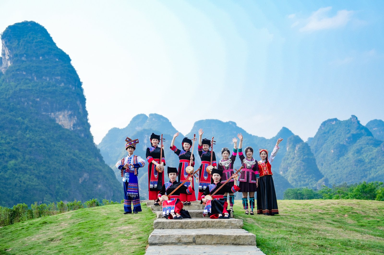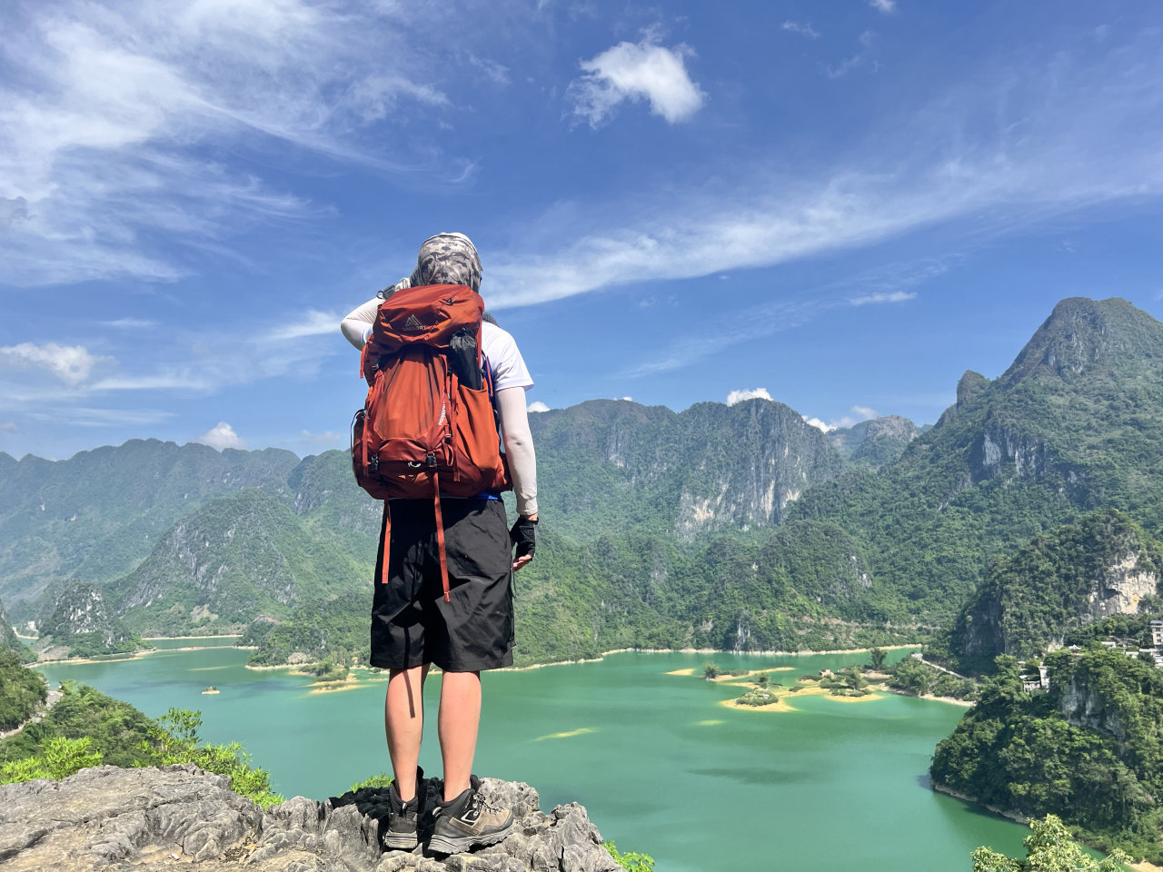 08:00早餐后出发,坐车1小时到达浩坤湖徒步起点,今天徒步网红浩坤湖穿越线,全程约13公里,爬升500米,徒步6小时左右。中午也是路餐干粮。这里也是广西山水经典的徒步景色