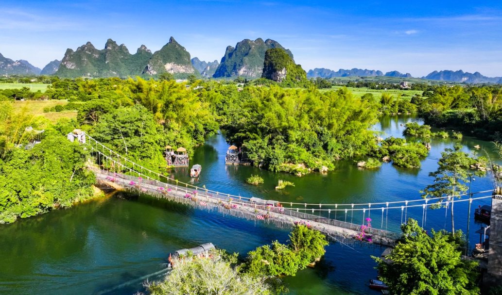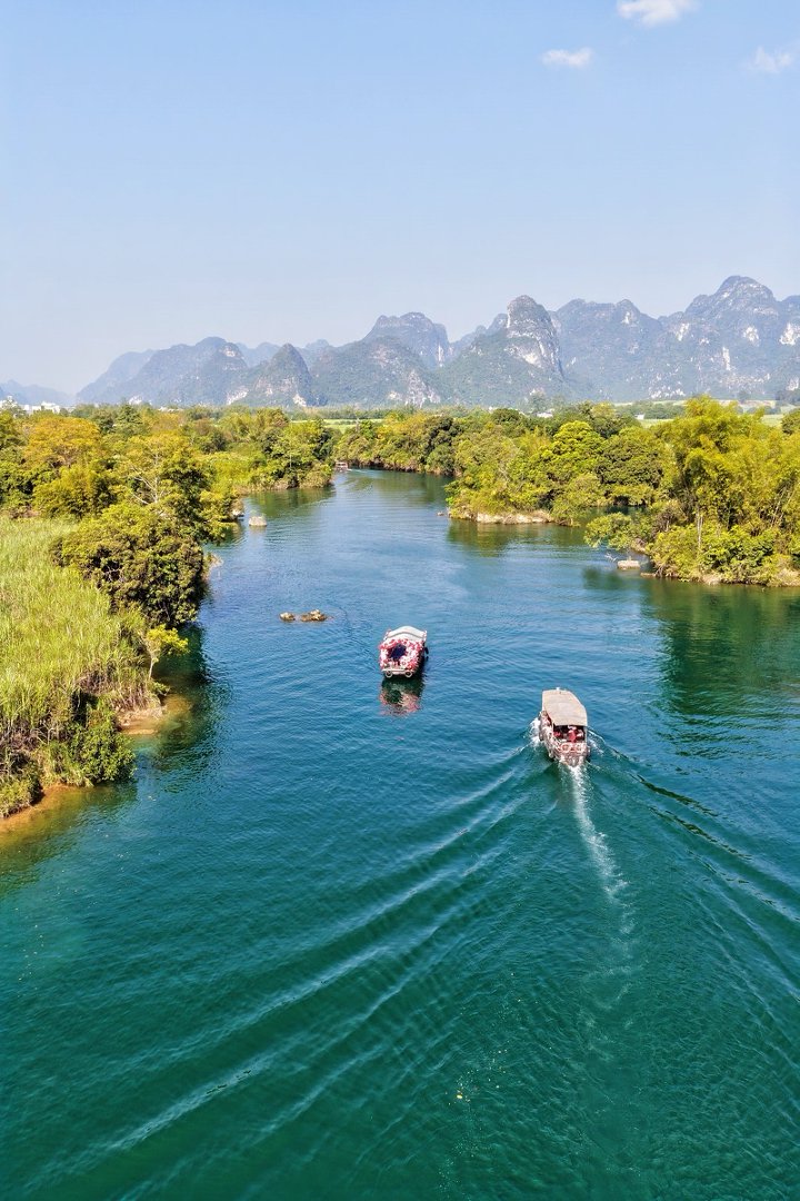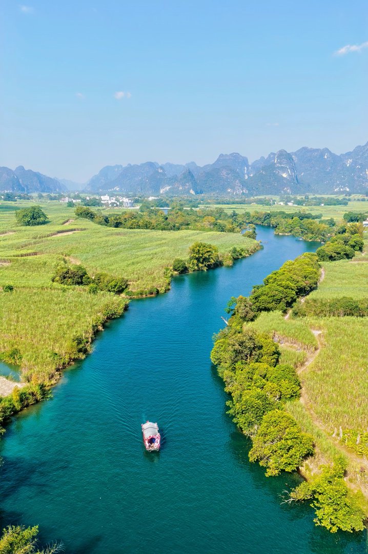 峒那屿湾景区被誉为“别样漓江”“桂水仙河”,曾被《花千骨》《蜀山战记》等多部影视剧取景
