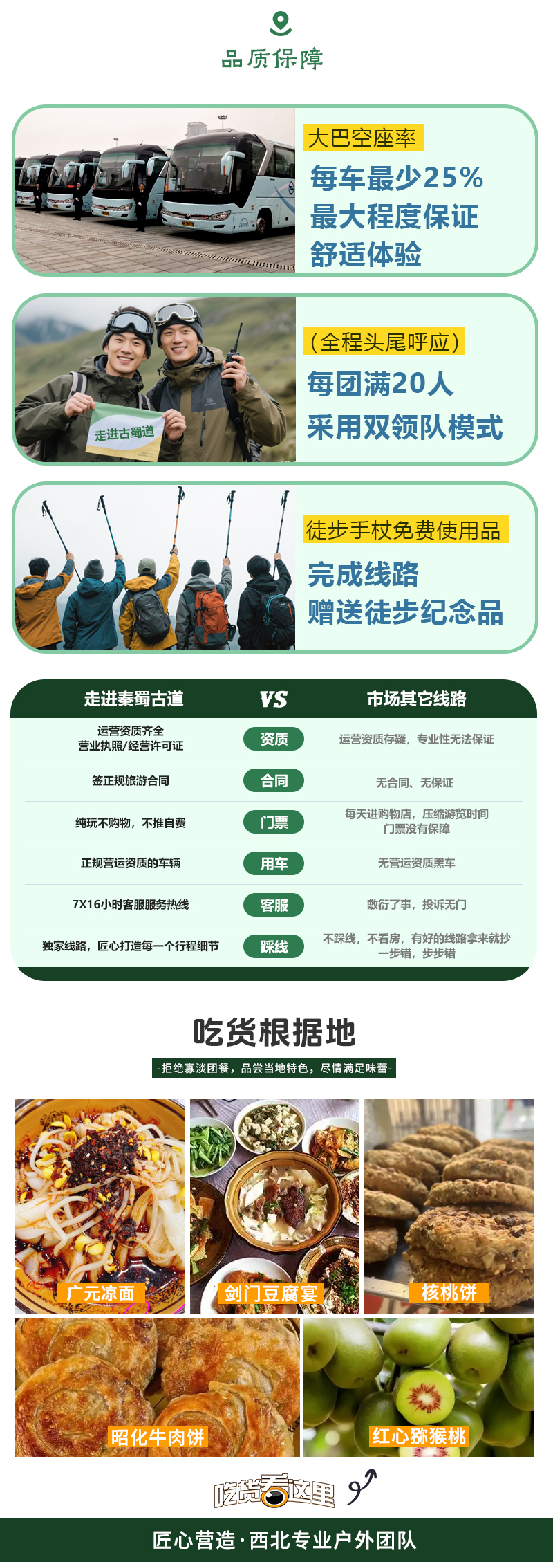 4. 秦巴山区受自然条件限制,旅游设施较沿海地区落后,车、房等均不如内地和沿海地区,本社尽最大努力,满足旅客需求,希望团友善于调节心情,而不是抱着寻找落后的心态!