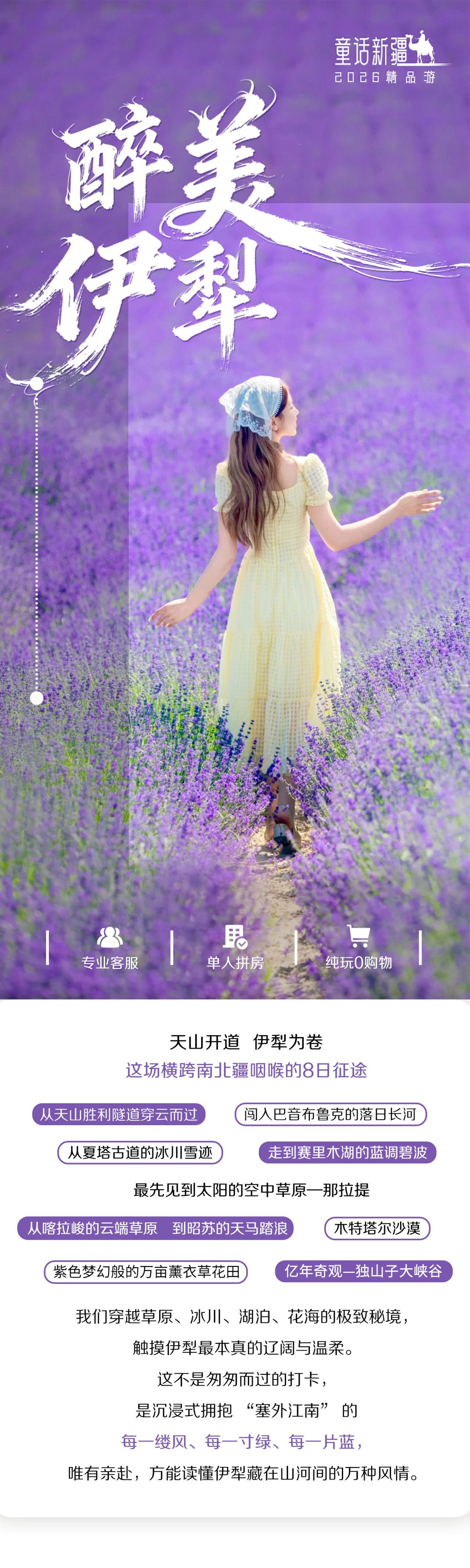 3. 独家赠送薰衣草花田门票,如薰衣草花期已过,不去不退,勿苛求。
