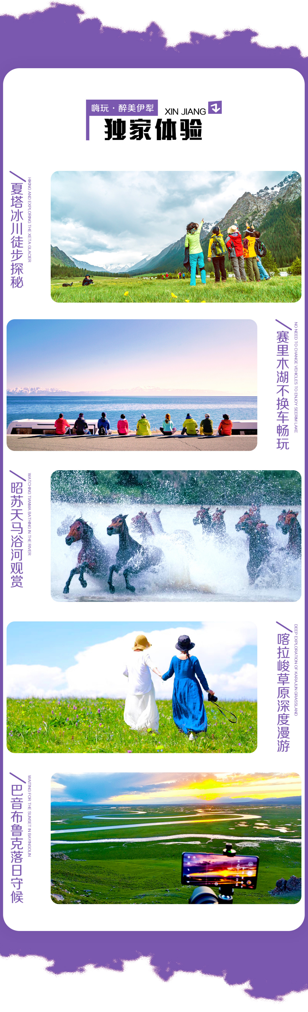 2. 5-7月的赛里木湖边繁花似锦,喜欢拍照的团友可准备颜色鲜亮的服装,拍照美美的。