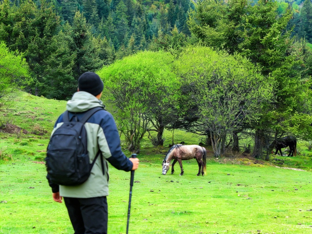 而徒步的尾声,会在仙女滩邂逅极致的人文与自然交融之景。站在开阔的林间草甸上,360 度全景将扎尕那四村一寺尽收眼底,东哇村的藏式木屋依山而建,炊烟袅袅;拉桑寺的金顶在阳光下熠熠生辉,梵音隐约可闻,高原村落的质朴与宗教圣地的庄严在此完美融合,为整段徒步画上圆满且震撼的句点。