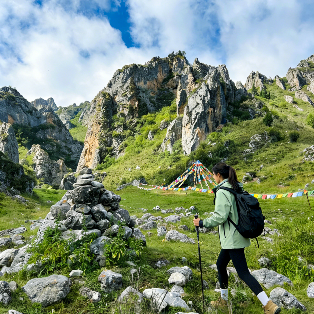 早餐后,我们收拾一下就可以踏上激动人心的扎尕那景区大环线徒步。我们从景区大门乘坐电瓶车到达一线天景点,然后开始徒步,路线为一线天-神王庙- 石林-大峡谷 -通天洞 - 仙女滩。踏上扎尕那大环线徒步之旅,就像闯入了一场层次丰富的高原风光盛宴,每一段路程都藏着独一无二的自然与人文惊喜~