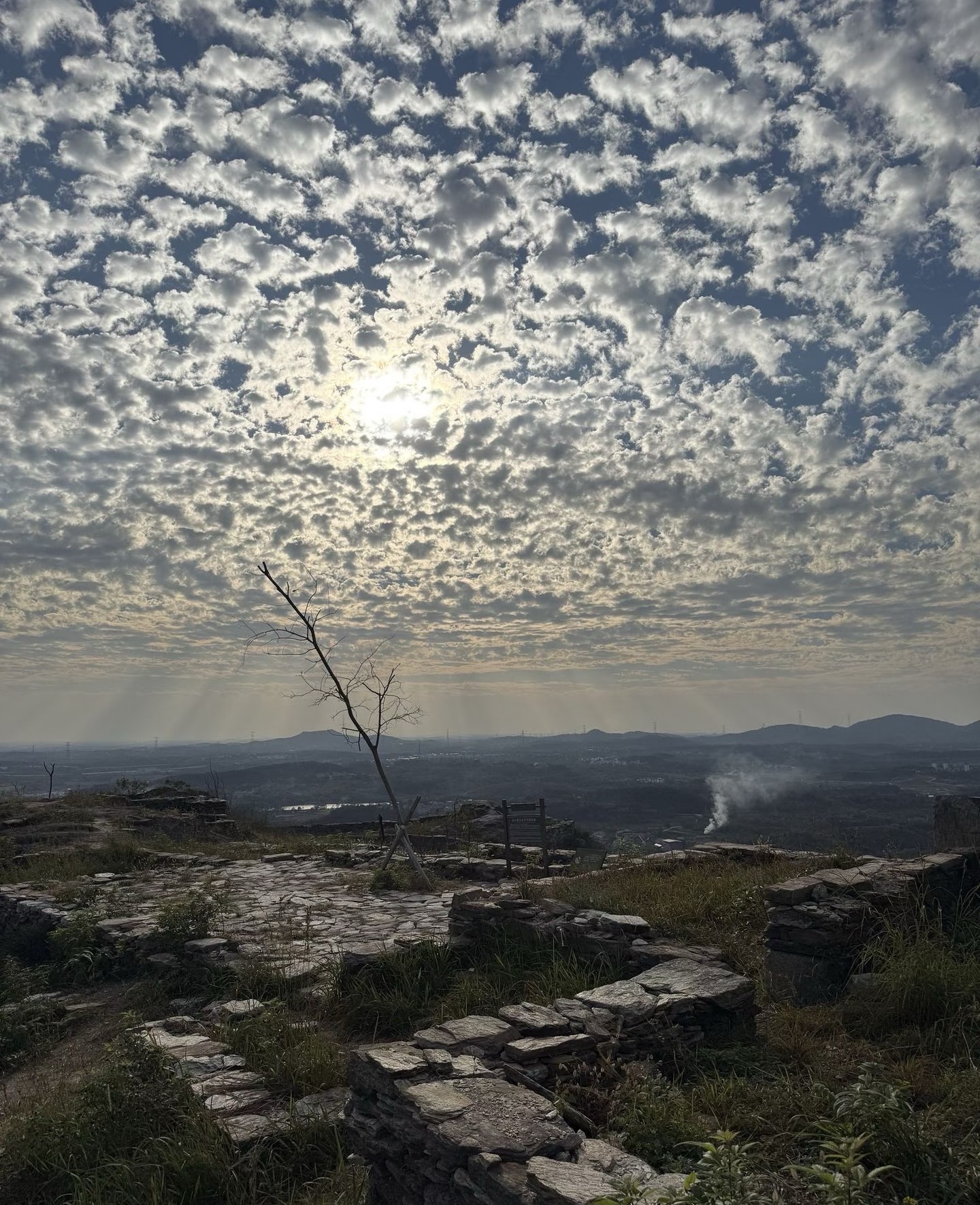 这里藏着武汉少有的600年明清赣派古村,石墙黛瓦、马头墙错落有致,晒秋广场(春日限定嫩黄晒架)氛围感拉满。后山徒步路线平缓,全程约5公里,累计爬升300米,新手也能轻松hold住。走皮影戏馆旁入口→三亭→古山寨→观景台环线,下山恰逢夕阳,能俯瞰整个古村全景,拍照超出片。